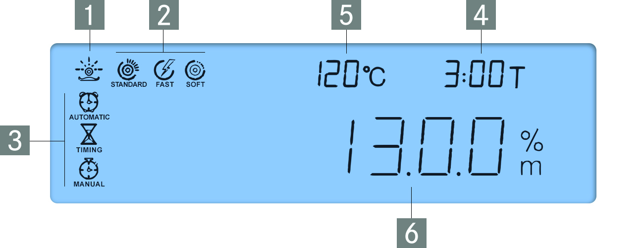 Waageninterner Speicher für den automatischen Ablauf von 15 Trocknungsprogrammen und 5 durchgeführten Trocknungsprozesse